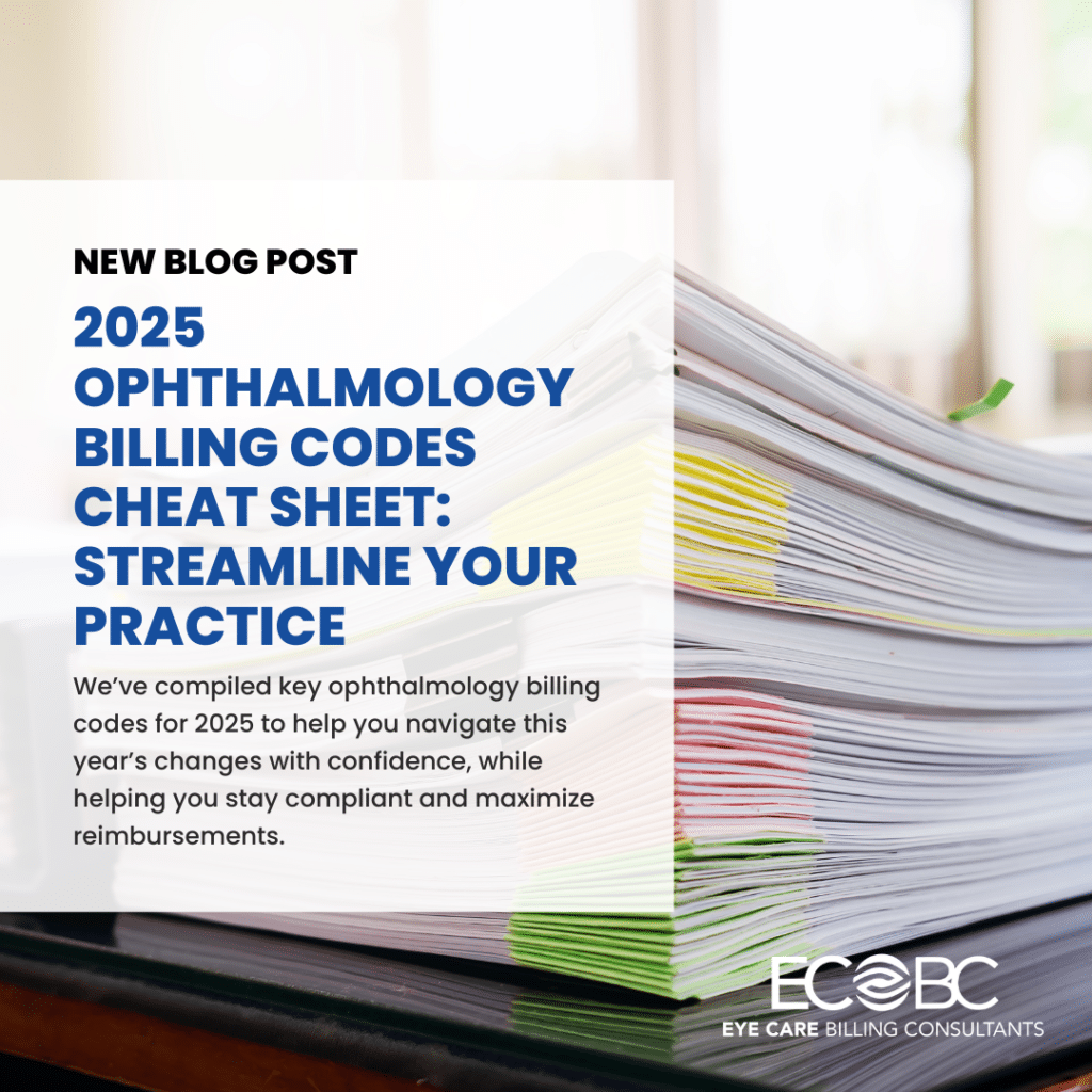 By Eye Care Billing Consultants April 25, 2025 Ophthalmology Coding 2025 Ophthalmology Billing Codes Accurate billing is the backbone of any successful